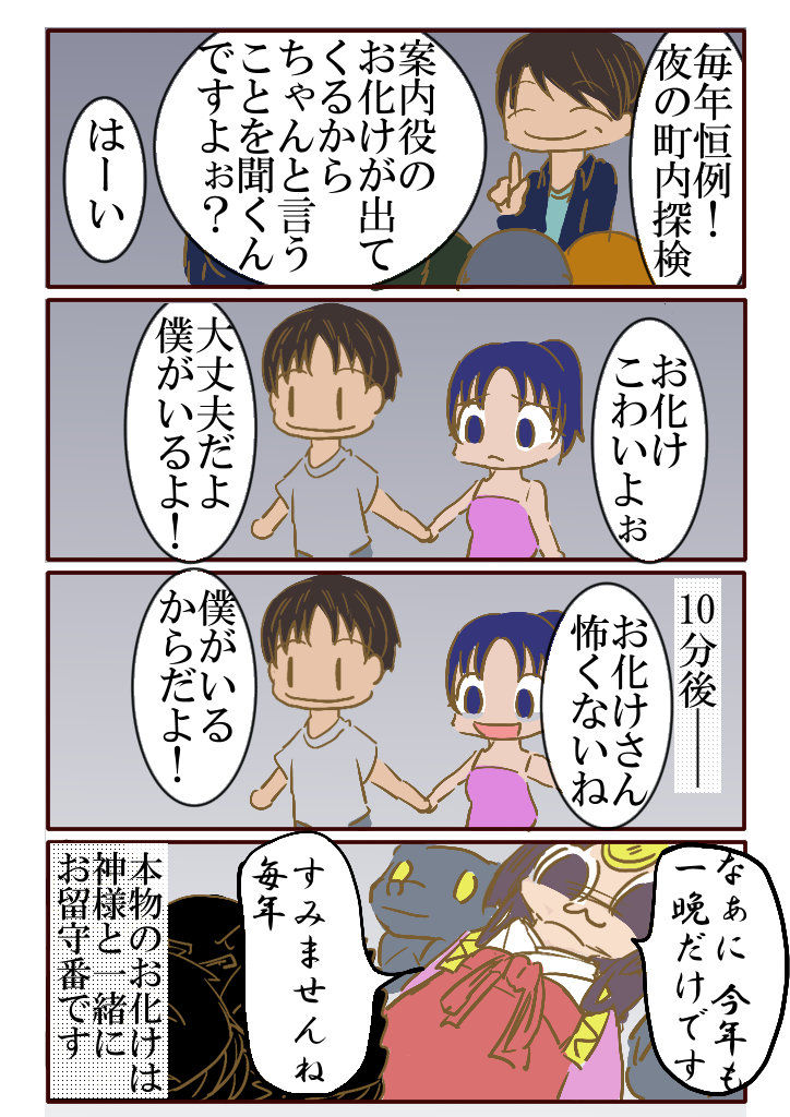 2018/07/31 毎年恒例[神様の見えざる日常] 神様<どうも人たちよ。お久しぶりです。アマメです。これからもどうぞよろしく。 みなもちゃんたちのお話一覧はコチラ その他のシリーズ デカ目のみなも 【キーワード:博多弁/4コマ/カップル/ほのぼの/ラブコメ/旅行】 不妊治療は保険適用です。 【キーワード:不妊治療/お金/保険適用/高度医療/コミックエッセイ】 神の見えざる日常 【キーワード:神様/かわいい/博多弁/ほのぼの】 華の立つ様 【キーワード:歴史/戦国時代/シリアス/立花誾千代/立花宗茂/】 その他、読み切り漫画などはこちら↓↓↓ スポンサーリンク スポンサーリンク 「神の見えざる日常[四コマ/神様]」カテゴリの最新記事