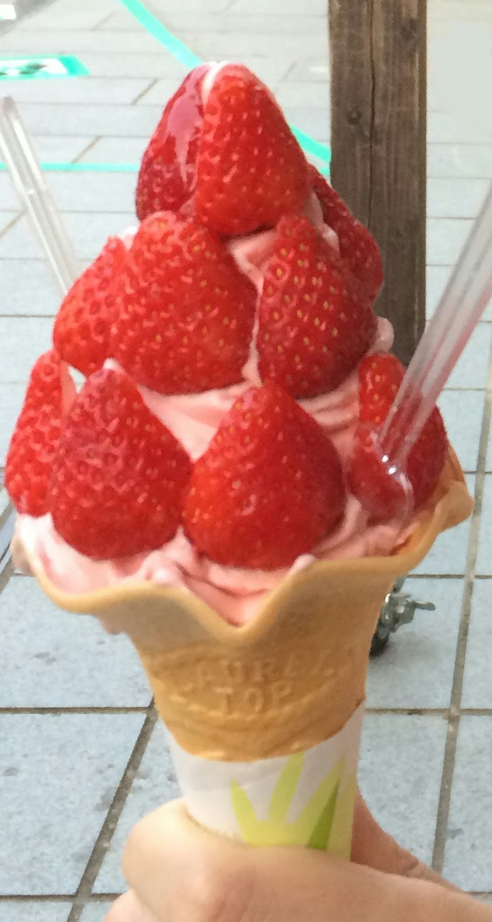 鬼のように盛られた熊本県産いちごとイチゴのソフトクリーム!!