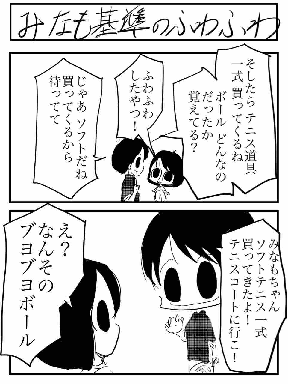 2020/09/08 No.90 テニスをするみなも なおや<楽しかったーみなも<テニスー!みなもちゃんたちのお話一覧は↓↓↓コチラ前 №89 みなも劇場「おむすびころりん」次 №91 ソファを作りたいみなも その他のシリーズ デカ目のみなも 【キーワード:博多弁/4コマ/カップル/ほのぼの/ラブコメ/旅行】 不妊治療は保険適用です。 【キーワード:不妊治療/お金/保険適用/高度医療/コミックエッセイ】 神の見えざる日常 【キーワード:神様/かわいい/博多弁/ほのぼの】 華の立つ様 【キーワード:歴史/戦国時代/シリアス/立花誾千代/立花宗茂/】 その他、読み切り漫画などはこちら↓↓↓ スポンサーリンク スポンサーリンク 「デカ目のみなも[博多弁/4コマ]」カテゴリの最新記事